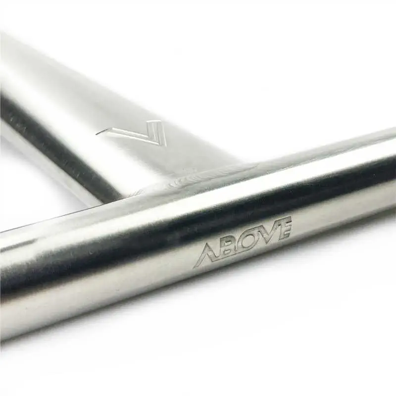 Die Above Libra Titanium T-Bar Stunt-Scooter-Lenker wird aus nahtlosem Titanrohr der Güteklasse 9 hergestellt, das eines der höchsten Festigkeits-Gewichts-Verhältnisse aller Metalllegierungen aufweist.