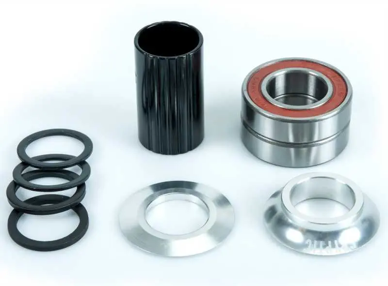 - Im Set enthalten: 2x Industrielager, 2 x große Abdeck Konen (flach: für Kettenblattseite / hoch: für Nicht-Kettenblattseite), 4 x kleine Distanzringe
