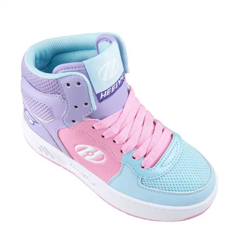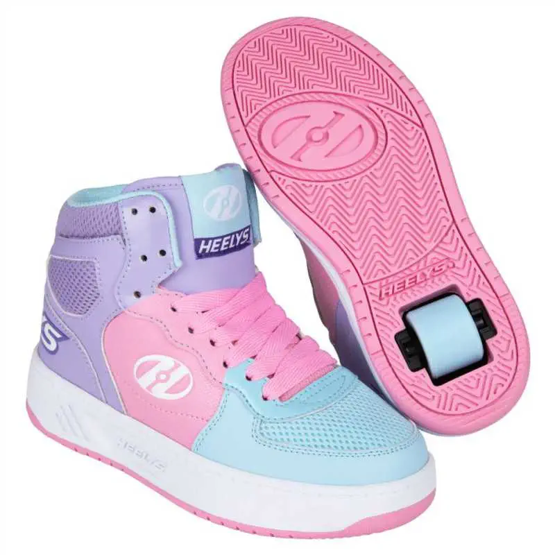 Heelys sind patentierte Produkte, die ein abnehmbares Rolle in der Ferse haben und dem Benutzer die Freiheit geben, reibungslos vom Gehen oder Laufen zum Skating überzugehen, indem das Körpergewicht auf die Ferse verlagert wird. Die Rollen lassen sich leicht abnehmen und laufen wie normale Schuhe.