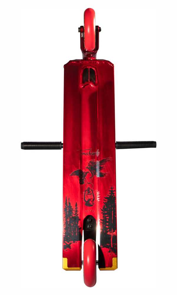 Tomahawk ist zurück. Das Tomahawk-Deck ist 5,3 Zoll breit und 21,5 Zoll lang und bietet alle zusätzlichen Vorteile der besten Produkte auf dem Markt zu einem erschwinglichen Preis. In Kombination mit einer T-Bar Lenker, einer SCS-Kompression und 30 mm breiten Rollen ist der Tomahawk das perfekte Set für jeden Benutzer, der Streetstyle fahren möchte oder für jemanden, der etwas größer ist und einen bequemen Scooter benötigt.