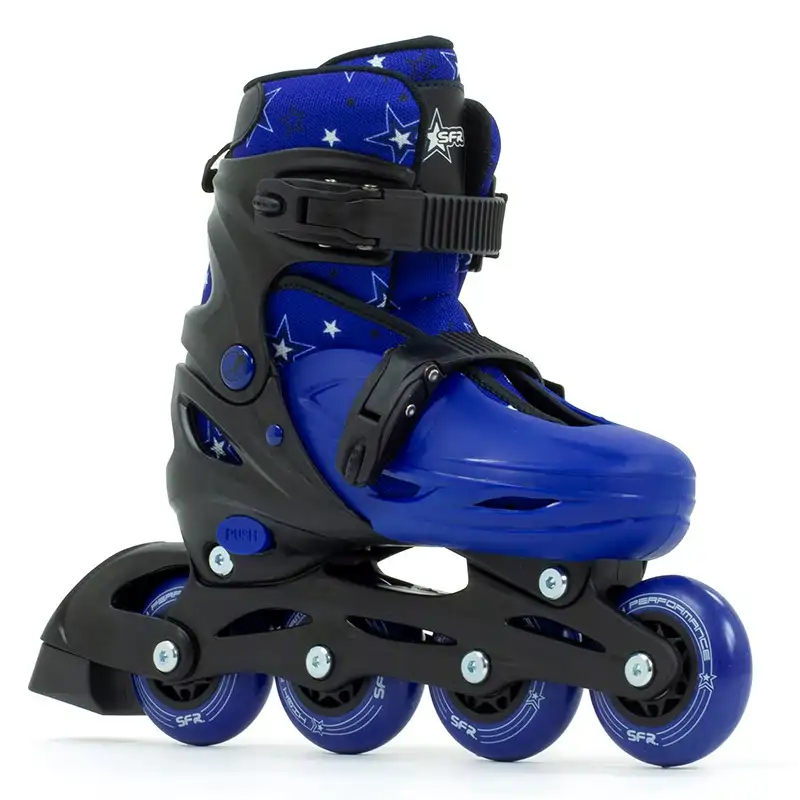 Der SFR Plasma ist ein verstellbarer Kinder Inline-Skate. Ideal für Anfänger. Sein farbenfrohes und vielseitiges Design besticht durch ein sich wiederholendes Sternenmuster.